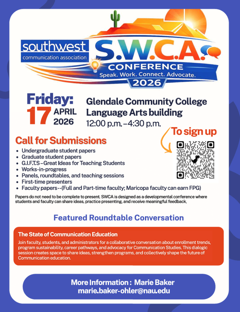The Southwest Communication Association (SWCA) invites Communication faculty, students, scholars, and community partners to participate in SWCA 2026.